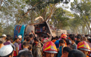 ফলে ঘটনাস্থলের উভয় পাশে শত শত বাস ট্রাক আটকে পড়ে। কালীগঞ্জ দমকল বাহিনীর স্টেশন অফিসার মামুনুর রহমান জানান, আমরা ঘটনাস্থলে পৌছে ১০জনের লাশ উদ্ধার করেছি। আহতদের কালীগঞ্জ ও যশোরের বিভিন্ন হাসপাতালে পাঠানো হয়েছে। এখনও উদ্ধারকাজ চলছে। নিহতের সংখ্যা আরও বাড়তে পারে বলে জানান ফায়ার সার্ভিসের এই কর্মকর্তা।