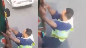 সামাজিক যোগাযোগ মাধ্যমে ছড়িয়ে পড়া ভিডিওতে দেখা যায়, একজন পুলিশ সদস্য ইউনিফর্ম পড়া অবস্থায় চলন্ত অটোরিকশার রড ধরে ঝুলে আছেন। পেছনে কয়েকজন যাত্রী চালককে অনুরোধ করছেন অটোরিকশা থামানোর জন্য কিন্তু অটোরিকশা চালক থামাচ্ছেন না। অটোরিকশার পাশ দিয়ে বিভিন্ন পরিবহন যাচ্ছে। পরবর্তীতে একটি স্থানে পৌঁছালে জ্যামে উপস্থিত স্থানীয় ও পুলিশ সদস্য মিলে চালককে আটক করেন।