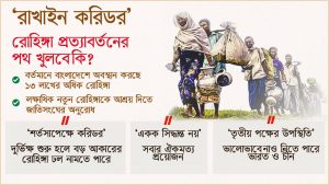 রাখাইনে করিডর দিলে বাংলাদেশ কীভাবে উপকৃত হবে— এমন প্রশ্নে সরকারের ওই কূটনীতিক বলেন, ‘রোহিঙ্গাদের আসার কথাটা চিন্তা করেন। তারা মিয়ানমার থেকে পালিয়ে এসেছেন। এখনো আসছেন। যাওয়াটা তো একই রকম হতে পারে, পারে না? মানবিক করিডর তৈরি করা গেলে রোহিঙ্গারা যদি যেতে শুরু করেন…; আপনাদের কি মনে হয় রোহিঙ্গারা এখানে থাকতে চান? সব রোহিঙ্গা ফেরত যেতে চায়। কেউ যদি মনে করে রোহিঙ্গারা এখানে থেকে যেতে চায়, এটা সঠিক নয়। একবার যদি তারা (রোহিঙ্গারা) যাওয়া শুরু করেন, অন্যরাও মনে করবে যে পরিস্থিতি অনুকূলে, আমরাও যেতে পারি। বিষয়টা এত বেশি অঙ্ক কষে হবে না, এখানে অনেক আবেগ আছে।’