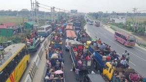 শুক্রবার (৬ জুন) দুপুর দেড়টার দিকে ঢাকা-টাঙ্গাইল-যমুনা সেতু মহাসড়কে এমন চিত্র দেখা গেছে।