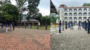 বিদ্যালয়ের প্রধান শিক্ষক মনোতোষ দাশ বলেন, মাঠে কাদা থাকায় ডিসি মহোদয়ের গাড়ি ঢুকতে পারত না, তাই অস্থায়ীভাবে এই রাস্তা তৈরি করা হয়েছে। এটা আমরা করিনি, প্রশাসন করেছে। দয়া করে বিদ্যালয়কে ভুলভাবে উপস্থাপন করবেন না।