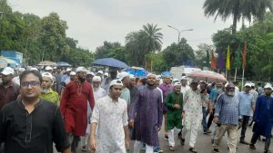 থেমে থেমে বৃষ্টি পড়লেও মানুষের স্রোত কমছে না। এক পর্যায়ে বৃষ্টির মধ্যেই শুরু হয় ‘জুলাই সনদ চাই’ স্লোগান। বৃষ্টিভেজা এই সমাবেশ যেন হয়ে উঠেছে এক প্রতীকী প্রতিবাদ—যেখানে প্রাকৃতিক বাধাও দমিয়ে রাখতে পারছে না মানুষের ন্যায্য দাবির আকাঙ্ক্ষাকে।