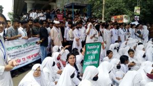 বুধবার (১৭ সেপ্টেম্বর) বেলা ১১টার দিকে সাতরাস্তা মোড়ে অবস্থান নেন আন্দোলনরত শিক্ষার্থীরা। সেখানে এসে তাদের সঙ্গে সংহতি জানান কয়েকটি প্রতিষ্ঠানের শিক্ষকরা।