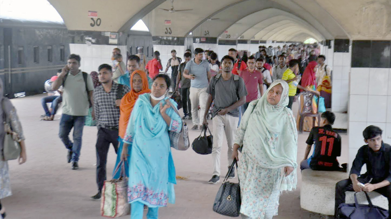 শনিবার (৪ অক্টোবর) সকালে রাজধানীর কমলাপুর রেলস্টেশন, সায়দাবাদ, যাত্রাবাড়ীর মেয়র হানিফ ফ্লাইওভার, গুলিস্তান, জিরো পয়েন্ট, পল্টন, কাকরাইল এলাকায় সরেজমিনে এমন চিত্র দেখা যায়।