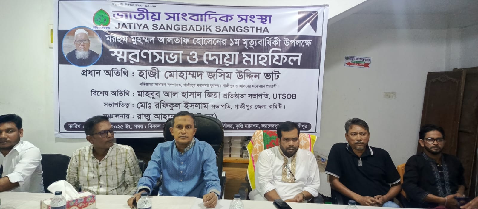 গাজীপুর: জাতীয় সাংবাদিক সংস্থার প্রতিষ্ঠাতা দেশবরেণ্য প্রবীণ সাংবাদিক মরহুম মুহম্মদ আলতাফ হোসেনের স্বরণে গাজীপুর জেলা শাখার উদ্যোগে মিলাদ ও দোয়া মাহফিল অনুষ্ঠিত হয়। মঙ্গলবার ১৪ অক্টোবর বিকেলে জাতীয় সাংবাদিক সংস্থা গাজীপুর জেলা শাখায় অনুষ্ঠিত মিলাদ ও দোয়া মাহফিল অনুষ্ঠানে মরহুম মুহম্মদ আলতাফ হোসেনের সৃতিচারণ করে তার সাংবাদিক জীবনের নানান বিষয় নিয়ে আলোচনা করা হয়। মরহুম মুহম্মদ আলতাফ হোসেন কর্ম জীবনে দেশের শীর্ষস্থানীয় বহু জাতীয় পত্রিকায় কাজ করেছেন। সাংবাদিকদের একতা, শান্তি শৃঙ্খলা তৈরি এবং নির্যাতন, নিপীড়ন বন্ধে ও সাংবাদিকদের যুক্তিক দাবি আদায়ের লক্ষ্য নিয়ে মরুহুম মুহম্মদ আলতাফ হোসেন ১৯৮২ সালে ১২ ফেব্রুয়ারি জাতীয় সাংবাদিক সংস্থা প্রতিষ্ঠা করেন। বর্তমানে দেশের প্রতিটি বিভাগ, জেলা ও উপজেলায় এর শাখা কমিটি রয়েছে। জাতীয় সাংবাদিক সংস্থা সাংবাদিকদের ঐক্য, সংহতি ও নিরাপত্তা নিশ্চিতে একটি ভারসাম্য পরিবেশে তৈরিতে নিরলস কাজ করে যাচ্ছেন। জাতীয় সাংবাদিক সংস্থার প্রতিষ্ঠাতা ও সভাপতি মুহম্মদ আলতাফ হোসেন রাজধানীর মুগদা মেডিকেল কলেজ ও হাসপাতালে চিকিৎসাধীন অবস্থায় ১৪ অক্টোবর ২০২৪ ইং সোমবার রাত ১০ টার দিকে তিনি শেষ নিশ্বাস ত্যাগ করেন। মৃত্যুকালে তিনি স্ত্রী, ২ পুত্র, কন্যা, নাতি-নাতনী সহ অসংখ্য আত্মীয়-স্বজন ও গুণগ্রাহী রেখে গেছেন।