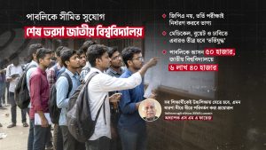 যারা পাবলিক বিশ্ববিদ্যালয়ে ভর্তি হতে পারবে না, তাদের শেষ ভরসা জাতীয় বিশ্ববিদ্যালয়। বিশ্ববিদ্যালয়টির অধিভুক্ত প্রায় ২ হাজার ২০০টি কলেজে অনার্স পর্যায়ে আসন রয়েছে প্রায় ৬ লাখ ৪০ হাজার।