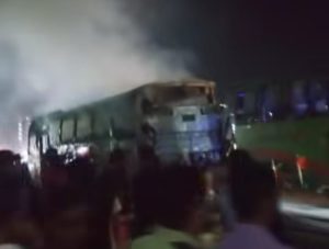গাজীপুর: গাজীপুরে চলন্ত বাসে হঠাৎ আগুন লেগে প্রায় ৮০ শতাংশ পুড়ে গেছে। শনিবার (১৫ নভেম্বর) রাত পৌনে ৮ টার সময় মহানগরীর ঢাকা ময়মনসিংহ মহাসড়কের হারিকেন এলাকায় এ ঘটনা ঘটে।