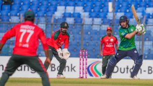 চট্টগ্রামে টস জিতে আগে ব্যাট করতে নেমে ১৯ ওভার ৫ বলে সবকটি উইকেট হারিয়ে ১১৭ রান করে আয়ারল্যান্ড। দলের হয়ে সর্বোচ্চ ৩৮ রান করে পল স্টার্লিং।
