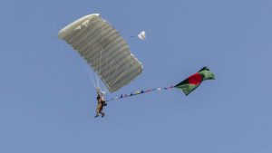 সশস্ত্র বাহিনীর উদ্যোগে অনুষ্ঠিত অনুষ্ঠানে অংশ নেন ‘টিম বাংলাদেশ’-এর ৫৪ জন প্যারাট্রুপার। এটি বিশ্বের সর্বাধিক পতাকা হাতে প্যারাট্রুপিং হিসেবে রেকর্ডে জায়গা করে নিয়েছে। ঐতিহাসিক এই মুহূর্ত প্রত্যক্ষ করেন প্রধান উপদেষ্টা অধ্যাপক ড. মুহাম্মদ ইউনূস।
