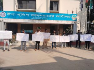 ছবি: সম্প্রতি ছিনতাইকারীদের হাতে নিহত এক ব্যাক্তি খুনের প্রতিবাদে মানববন্ধন