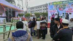 মাঠ ঘুরে দেখা যায়, প্রস্তুতির কোনো কমতি নেই। পূর্ব পাশে বিশাল মঞ্চ তৈরি করা হয়েছে। নারী নেতাকর্মীদের বসার জন্য বাঁশ দিয়ে আলাদা জায়গা ঘেরাও করে সেখানে কলাপাতা বিছিয়ে দেওয়া হয়েছে। পুরো শহর ও সমাবেশস্থল ছেয়ে গেছে ব্যানার-ফেস্টুন আর তোরণে।