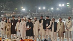 শ্রদ্ধা নিবেদন শেষে তারা শহীদ বেদিতে কিছু সময় নীরবে দাঁড়িয়ে দোয়া করেন।