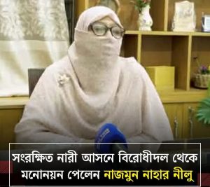 জানা গেছে, বাংলাদেশ জামায়াতে ইসলামী থেকে সংরক্ষিত মহিলা আসনে মনোনয়ন পেয়েছেন কেন্দ্রীয় কর্মপরিষদের সদস্য (প্রচার, সাহিত্য ও সাংস্কৃতিক বিভাগের সেক্রেটারি) নাজমুন নাহার নিলু। তিনি গাজীপুর মহানগরীর ৫৬ নম্বর ওয়ার্ডের বাসিন্দা ও গাজীপুর মহানগর মহিলা বিভাগের সেক্রেটারী ছিলেন। তিনি ছাত্রীসংস্থার সাবেক কেন্দ্রীয় সভানেত্রী হিসেবেও দায়িত্ব পালন করেছেন।