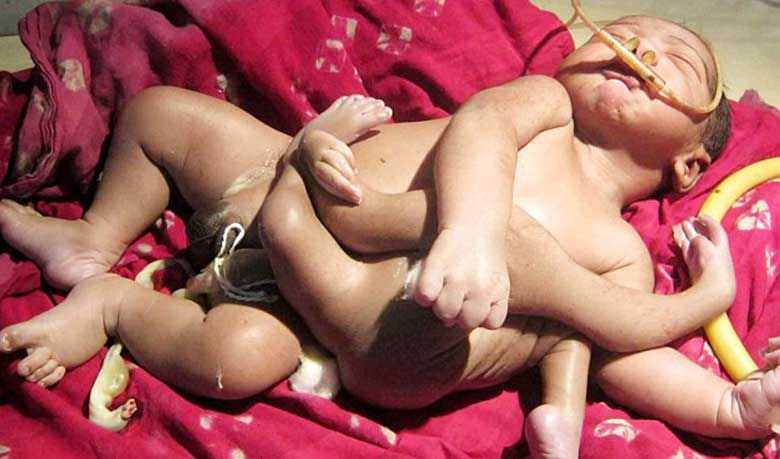 শিশুটি জন্মগতভাবে চারটি হাত ও চারটি পা নিয়ে ত্রুটিপূর্ণভাবে জন্মগ্রহণ করে চলতি সপ্তাহেই। তবে নির্দিষ্ট দিনের কথা এখানে উল্লেখ করা হয়নি। চিকিৎসকদের ধারণা, দুটি যমজ শিশু জোড়া লেগে থাকার কারণে এভাবে জন্ম নিয়েছে সে।
