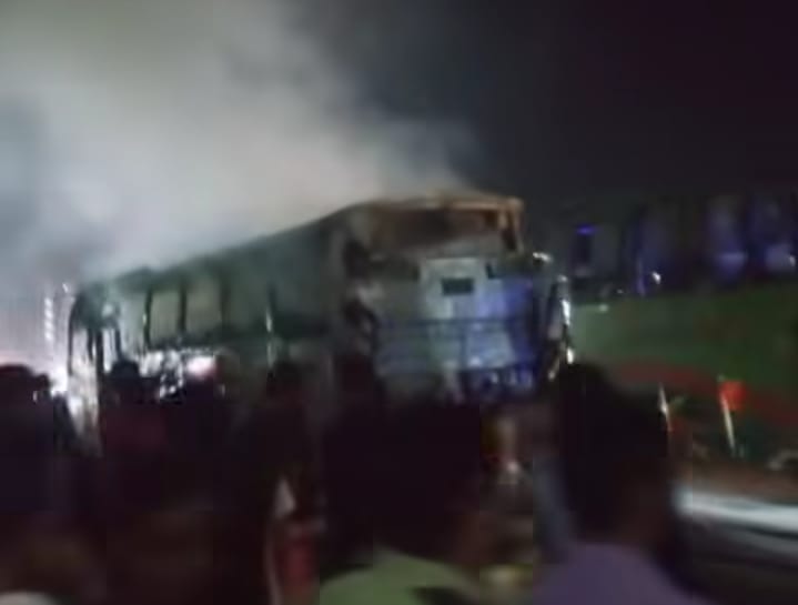 গাজীপুরে বাসে আগুন