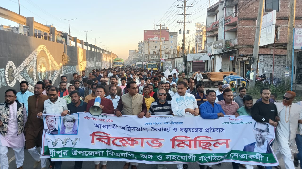 শ্রীপুরে আওয়ামীলীগের নৈরাজ্যের প্রতিবাদে বিএনপির মিছিল